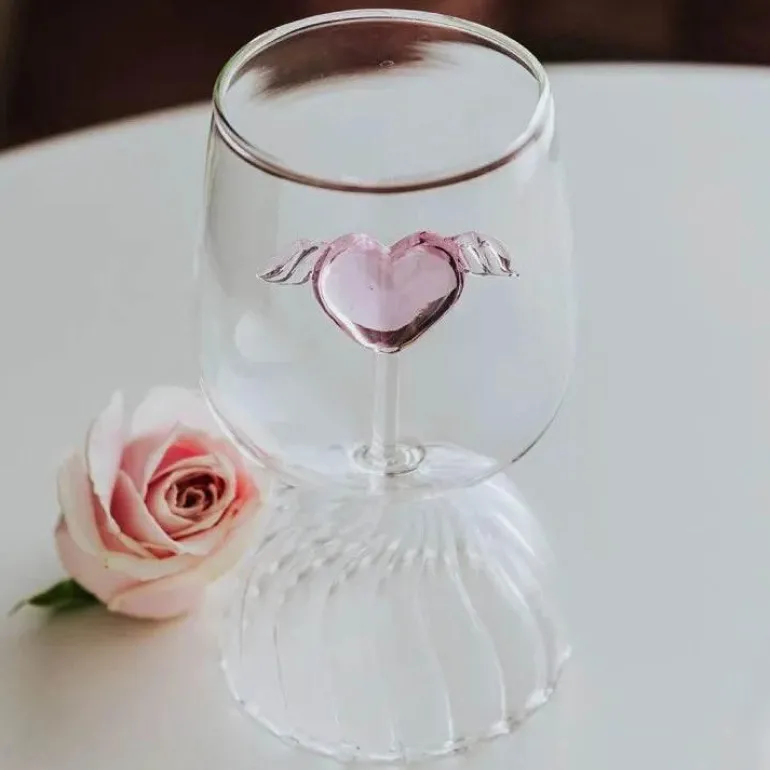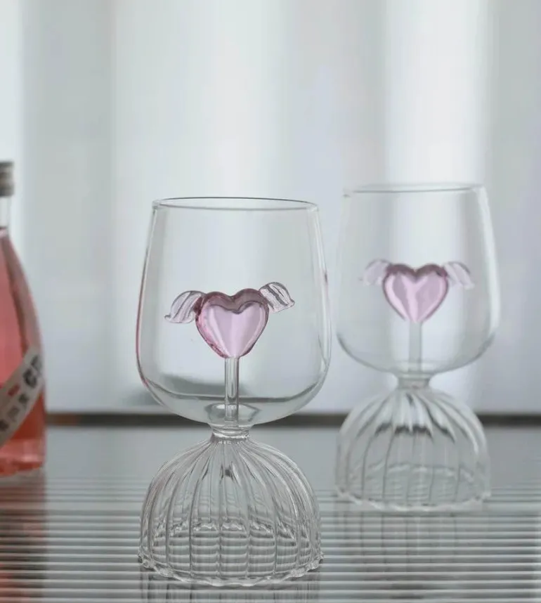 Wir präsentieren den bezaubernden Ripple Goblet Glass Cup im Pink Heart Design, ein entzückendes 350-ml-Gefäß, das Ihr Getränkeerlebnis veredelt. Hergestellt aus hochwertigem Borosilikatglas, vereint dieser elegante Becher Funktionalität mit einem Hauch von Raffinesse.