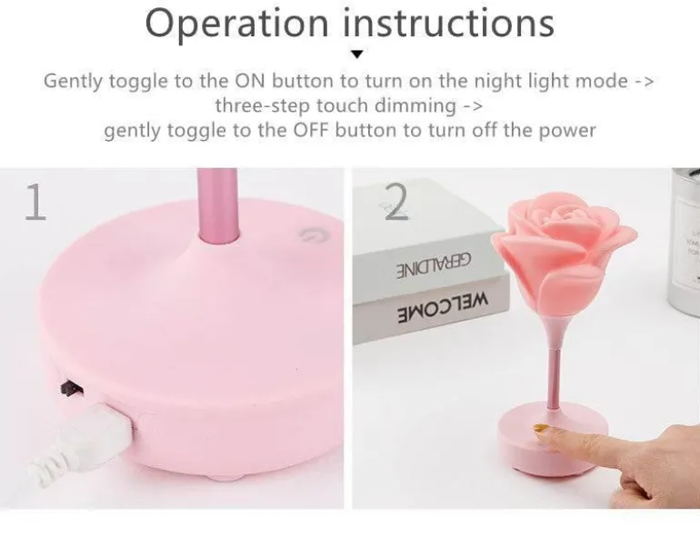 Genießen Sie die sanfte Schönheit des Rose Flower Touch-Nachtlichts und verwandeln Sie Ihren Raum in einen romantischen Rückzugsort.