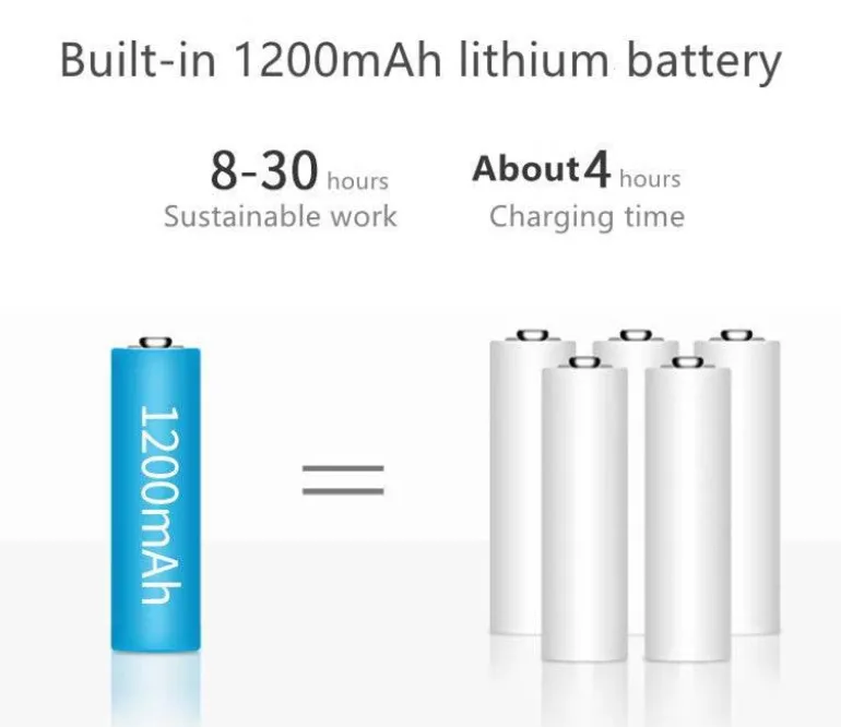 – Verfügt über eine eingebaute 1200-mA-Lithiumbatterie zum Laden und direkten Anschließen.