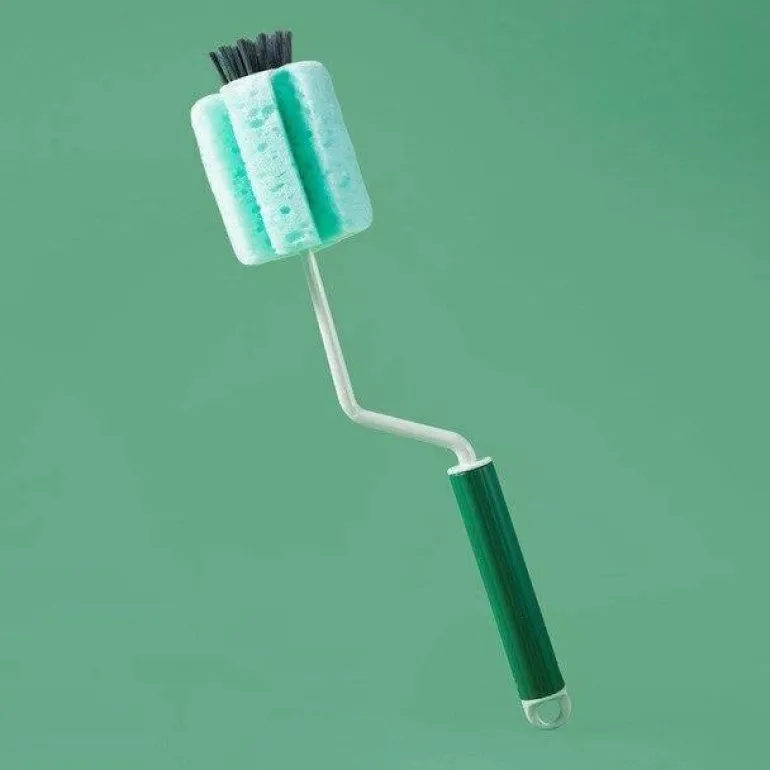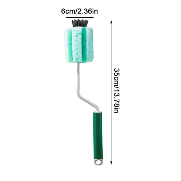 Das Wasserflaschenreinigungsset enthält eine gebogene Flaschenbürste mit 360-Grad-Drehung. Das schlanke Design verfügt über einen langen, rutschfesten Griff für bequemen Halt. Der weiche Schwamm und die spezielle Bürste an der Spitze sind sanft zu Oberflächen und entfernen effektiv Schmutz, ohne Karaffen, Wasserkocher, Mixer oder Glaswaren zu zerkratzen.