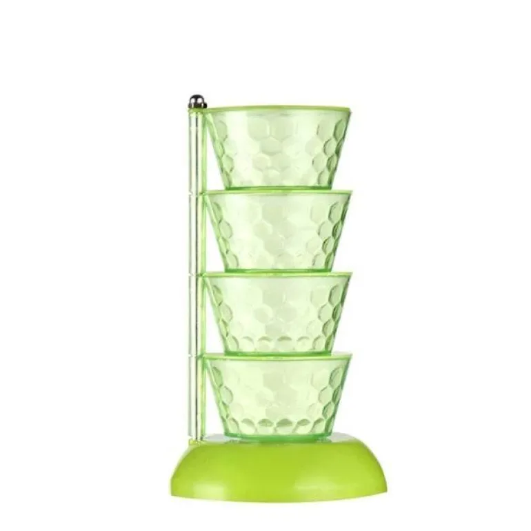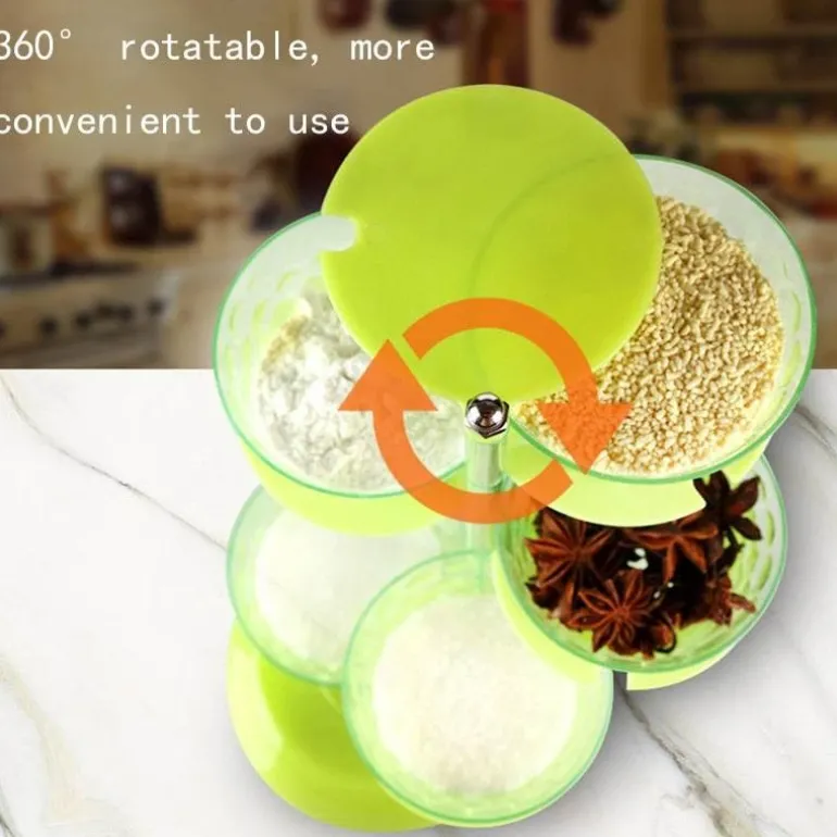Dieser robuste Gewürzbehälter aus hochwertigem ABS-Material besticht durch sein kreatives dreidimensionales Design. Die transparente Oberfläche verleiht Ihrer Arbeitsplatte einen Hauch von Eleganz und Schlichtheit. Die vier oder fünf Ebenen können individuell nach Bedarf genutzt werden. Die nahtlose 360°-Drehung ermöglicht einfachen Zugriff auf Ihre Gewürze und sorgt gleichzeitig für eine optimale Versiegelung, die die Frische Ihrer Gewürze bewahrt.