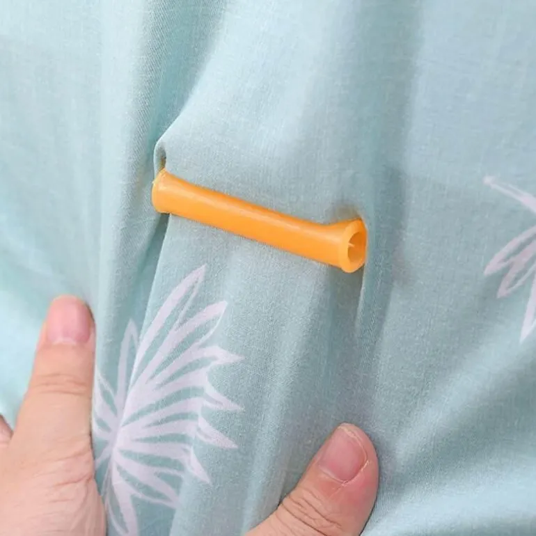 Dank des benutzerfreundlichen Designs ist die Installation unkompliziert. Schieben Sie die Clips einfach unter Ihr Laken, heben Sie den Knopf an, sodass er in das obere Loch passt, und sichern Sie ihn für einen festen Halt.