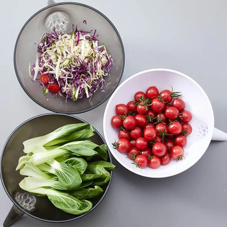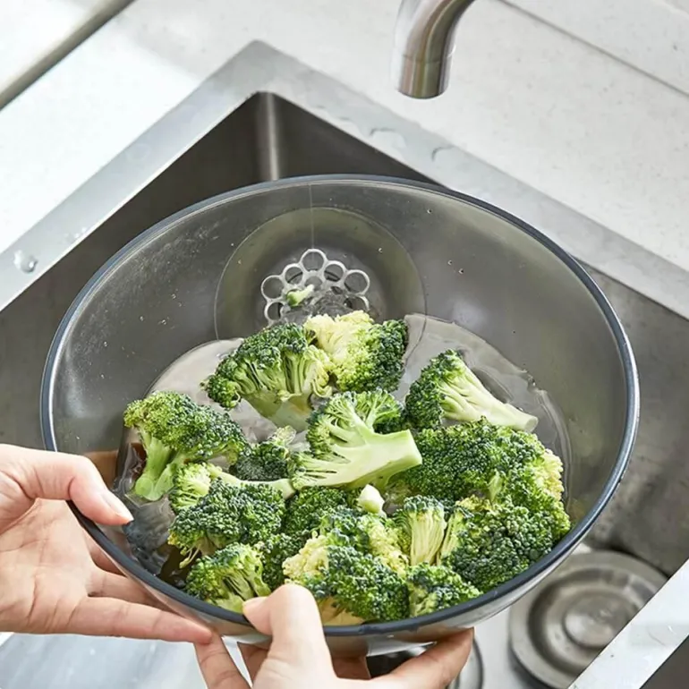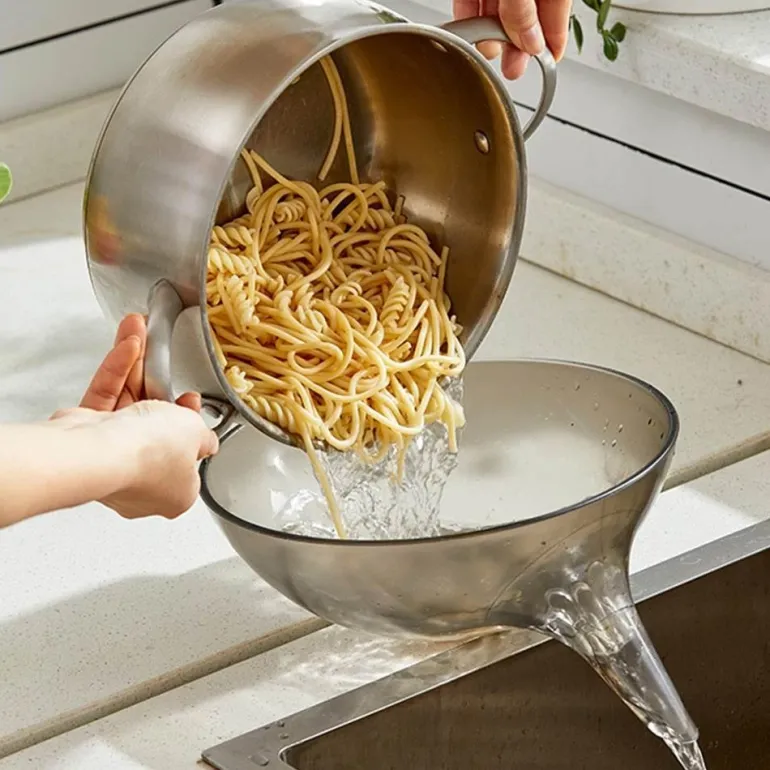 Diese vielseitige Abtropfschale geht über herkömmliche Siebe hinaus. Durch ihr quetschbares Design eignet sie sich ideal zum Abtropfen einer Vielzahl von Lebensmitteln, einschließlich Gemüse und Pickles, und ermöglicht Ihnen ein schnelles und effizientes Abtropfen.