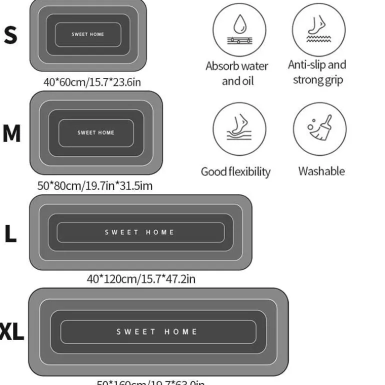 Dieser Teppich eignet sich für verschiedene Anwendungen, darunter Badezimmer, Wohnzimmer, Schlafzimmer, Balkon, Flur und Küche. Die rechteckige Form und das Streifenmuster verleihen Ihrem Zuhause eine moderne Note und betonen das Design jedes Raumes.