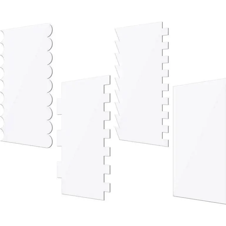 Erleben Sie die Vielseitigkeit unseres Cremeschaber-Sets. Es enthält vier unverzichtbare Werkzeuge für Bäcker aller Erfahrungsstufen. Die aus robustem, hochwertigem Kunststoff gefertigten Sägezahnglätter ermöglichen Ihnen professionelle Ergebnisse auf Kuchen, Gebäck und Desserts und machen Ihre Backkünste deutlich besser.