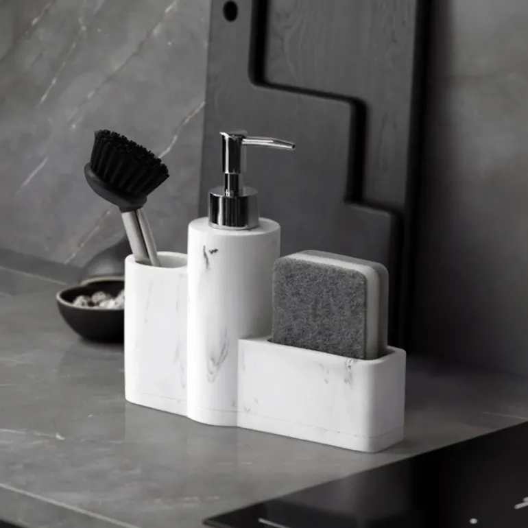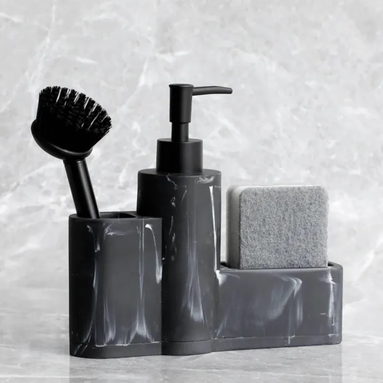 Transform your bathroom or kitchen with this elegantly designed soap dispenser, featuring a smooth dispensing mechanism for a hassle-free experience. With two integrated sections for the convenient storage of sponges, toothbrushes, or other everyday essentials, it helps create an organized and clutter-free environment. The modern, sleek design of this dispenser seamlessly complements any decor style, adding a touch of sophistication. Constructed from durable materials, it ensures long-lasting performance while enhancing the overall aesthetic of your space. Discover the ideal blend of practicality and elegance with this essential bathroom accessory. Explore practical solutions for your home at Decor .