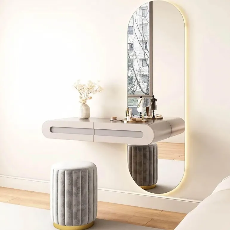 Der Sante Frisiertisch verfügt über großzügige Staufächer, die dafür sorgen, dass Ihre täglichen Utensilien geordnet und leicht zugänglich bleiben und Ihre Morgenroutinen optimieren. Seine elegante Ästhetik wertet nicht nur das Ambiente Ihres Schlafzimmers oder Ankleidebereichs auf, sondern setzt auch in jeder Umgebung einen markanten Blickfang. Erleben Sie die harmonische Kombination aus anspruchsvollem Design und praktischem Nutzen mit dieser eleganten Ergänzung für Ihr Zuhause, die Ihren Alltag zu etwas Besonderem macht.