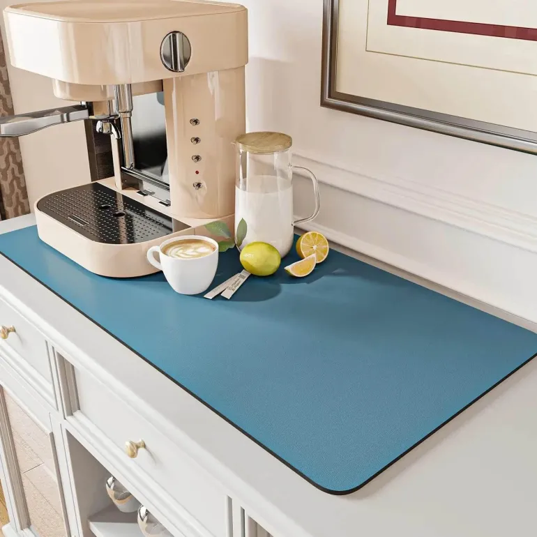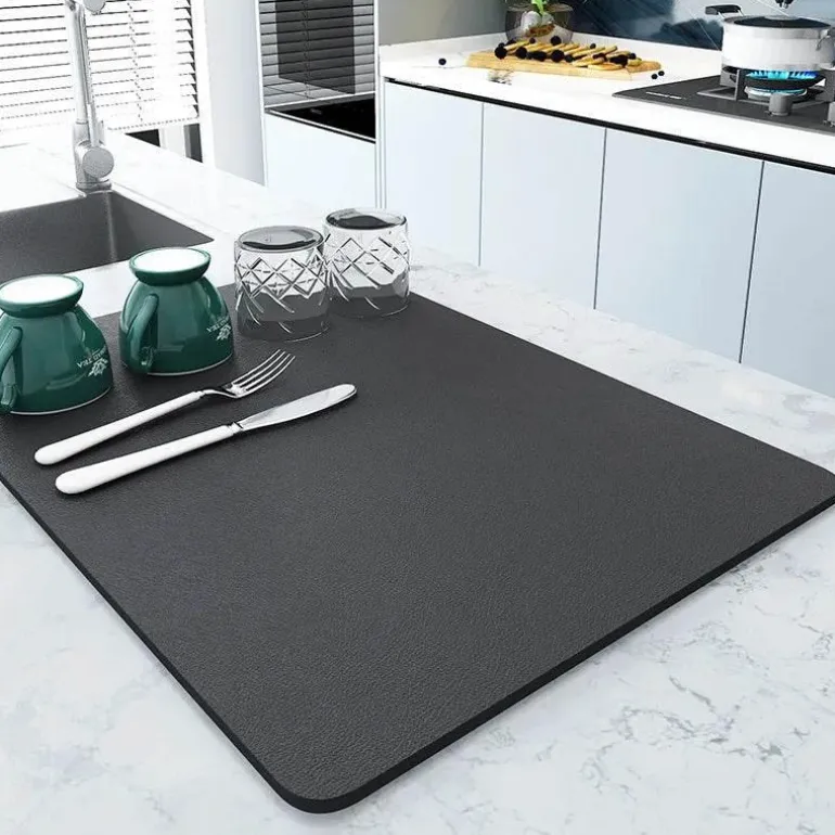 Verschönern Sie Ihre Küche, Bar oder Kaffeestation mit unserer saugfähigen Abtropfmatte. Sie bietet eine praktische Lösung für alltägliche Verschmutzungen und Verschüttetes. Dieses unverzichtbare Küchenaccessoire ergänzt nicht nur Ihre Einrichtung, sondern sorgt auch dafür, dass Ihre Arbeitsflächen sauber und trocken bleiben.