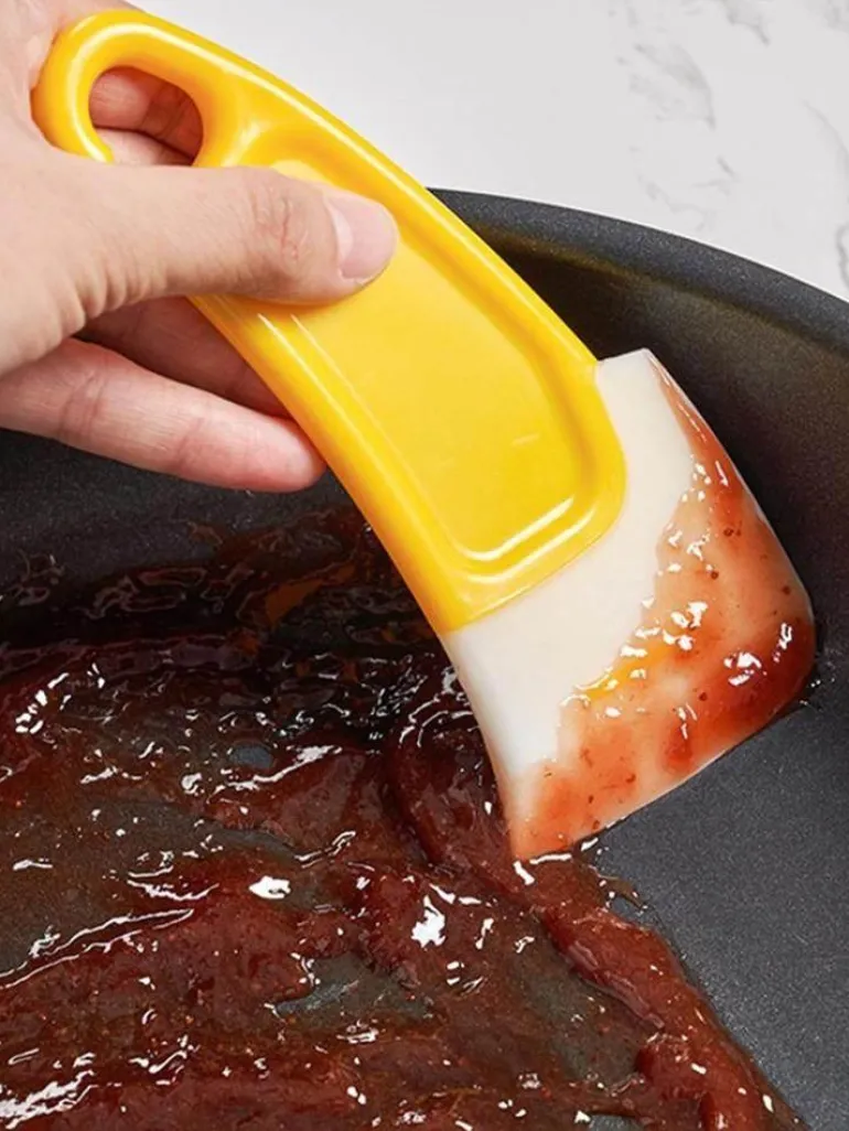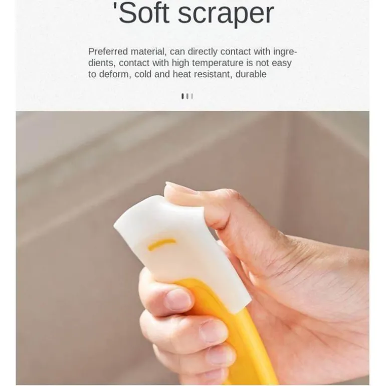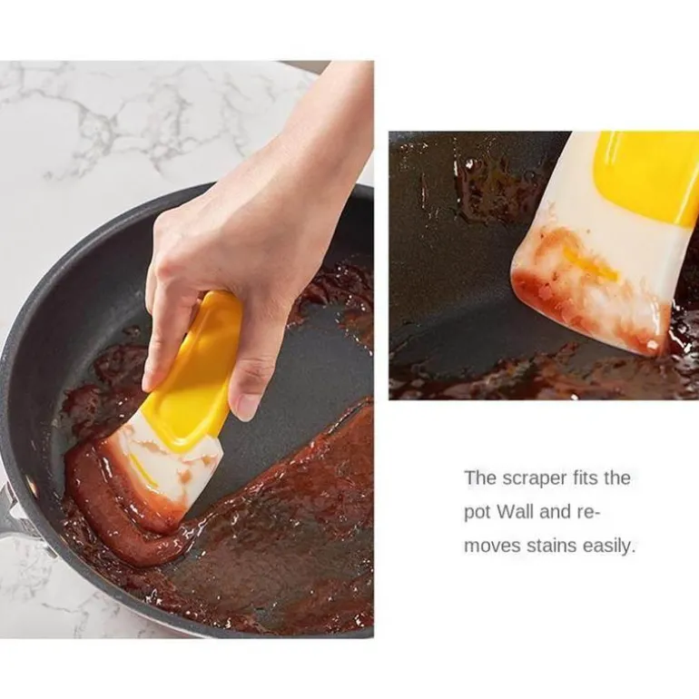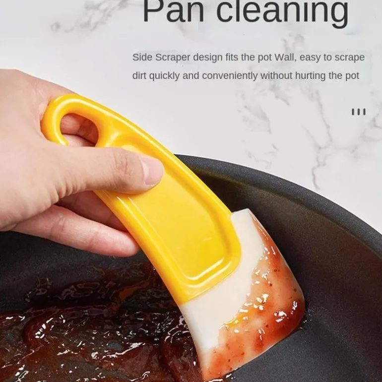 - Das seitliche Schaberdesign passt sich der Topfwand an und ermöglicht ein schnelles und bequemes Abkratzen von Schmutz, ohne den Topf zu beschädigen.
