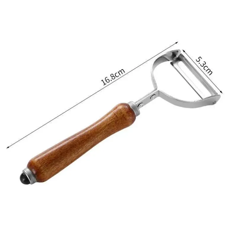 Die scharfe Klinge aus Aluminiumlegierung ermöglicht präzises Schälen und Abschaben von Obst und Gemüse und sorgt dafür, dass jede Aufgabe mit minimalem Kraftaufwand erledigt wird. Das ergonomische Design und die robuste Konstruktion sorgen für einen angenehmen Griff und machen ihn zu einem zuverlässigen Partner für alle Ihre Kochbedürfnisse.