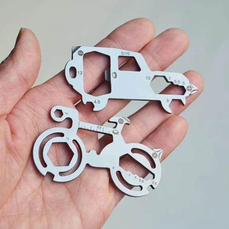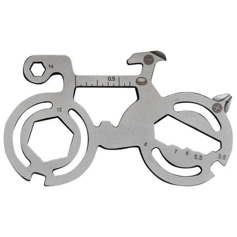 Das Werkzeug hat eine schlanke, fahrradförmige Silhouette und wird einem detaillierten Sandstrahlprozess unterzogen, der seine Haltbarkeit und Härte verbessert. Mit einer Länge von ca. 68 mm (2,68 Zoll), einer Breite von 40 mm (1,57 Zoll) und einer Dicke von 2,5 mm (0,10 Zoll) ist es kompakt und dennoch robust genug, um verschiedenen praktischen Anforderungen gerecht zu werden.