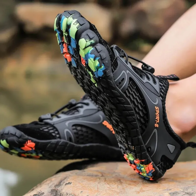 Wie unterscheiden sie sich von anderen Optionen? Im Vergleich zu herkömmlichen Strandschuhen bieten unsere Adventure Feel Quick Dry Non-Slip-Strandschuhe verbesserte Schnelltrocknungseigenschaften und eine zuverlässige rutschfeste Gummilaufsohle, die Komfort und Sicherheit nahtlos vereint.