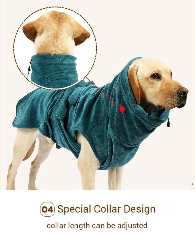 Für zusätzlichen Komfort verfügt das Handtuch über einen Taillenbund für eine verstellbare Passform, die das An- und Ausziehen erleichtert. Das Halsband verfügt über einen verstellbaren Gummizug für sicheren Sitz und ist in den Größen XS, S, M, L, XL, 2XL und 3XL für verschiedene Hunderassen geeignet. Dieses durchdachte Halsband bietet zudem anpassbare Längenoptionen für eine perfekte Passform.