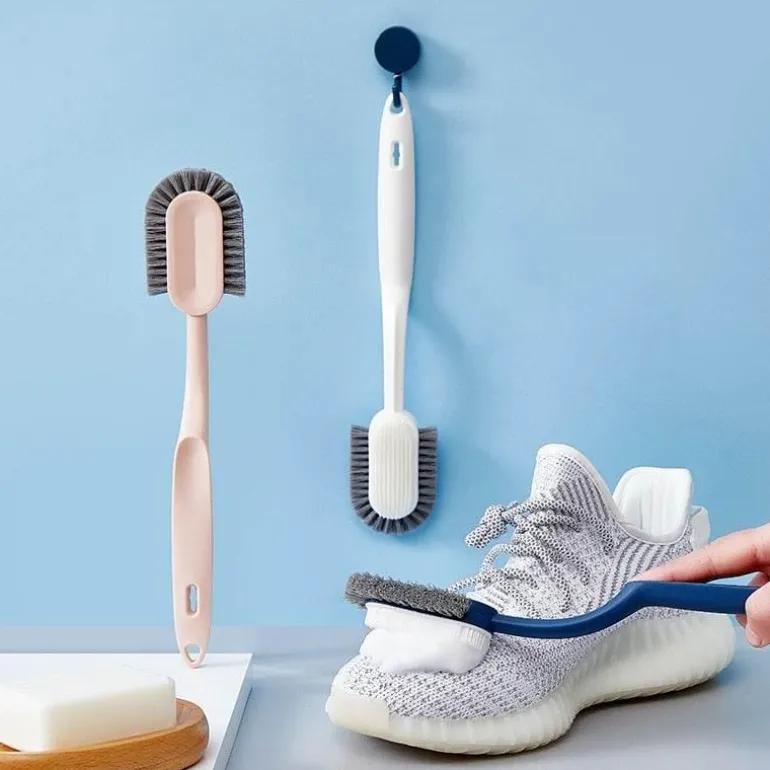 Die Mikrofaserborsten der Bürste dringen tief in Schuhe und enge Zwischenräume ein, während der gebogene Kopf schwer erreichbare Ecken effektiv reinigt. Die Spitze ist speziell geformt, um Rillen zu reinigen und Schmutz aus Schuhsohlen zu entfernen. Dank ihrer robusten und gesundheitsschonenden Konstruktion ist sie kinderleicht zu verstauen und zu pflegen.