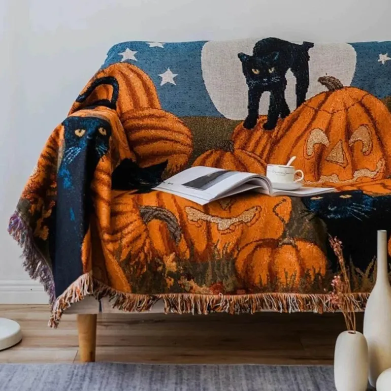 Diese vielseitige und praktische Decke verleiht Ihrem Zuhause oder Hotelzimmer eine gemütliche Note und eignet sich auch hervorragend zum Warmhalten im Flugzeug oder bei Outdoor-Aktivitäten. Das verspielte Halloween-Design mit einer skurrilen Cartoon-Katze setzt einen festlichen Akzent in Ihrer Einrichtung.
