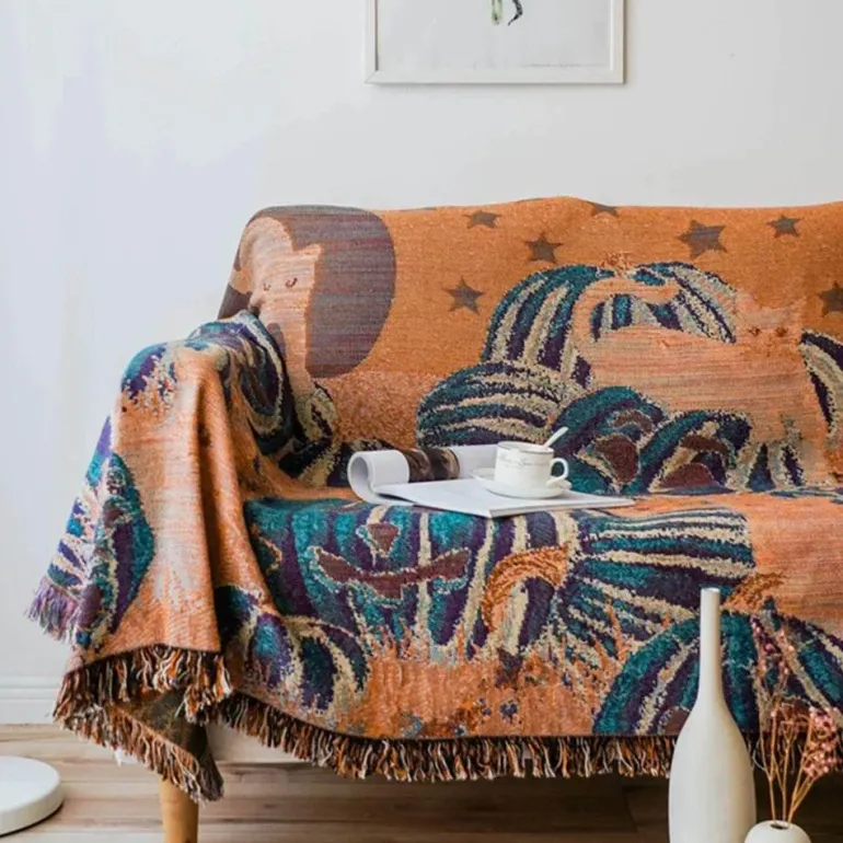Diese elegant gestaltete rechteckige Decke besticht durch ihr charmantes Jacquardmuster, das jeden Raum optisch aufwertet. Leicht und tragbar, eignet sie sich perfekt für Picknicks, Reisen oder zum Einkuscheln an kühlen Abenden zu Hause.