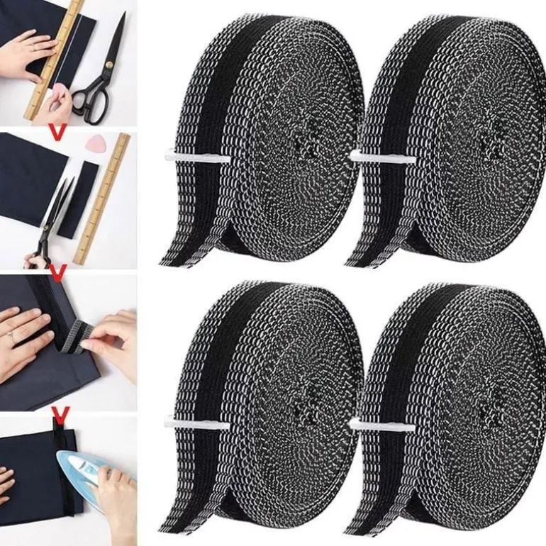 Jede Packung enthält eine Rolle selbstklebendes Saumband, das für Komfort ohne Nähen sorgt. Genießen Sie mühelos einen maßgeschneiderten Look und verbessern Sie die Pflege Ihrer Garderobe mit dieser praktischen Lösung. Entdecken Sie weitere Optionen bei Decor .