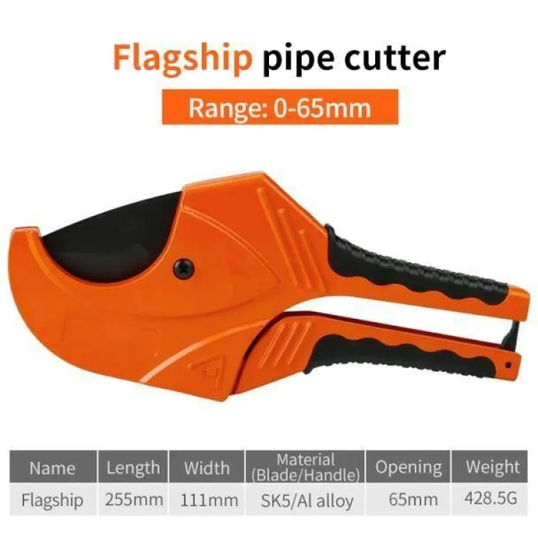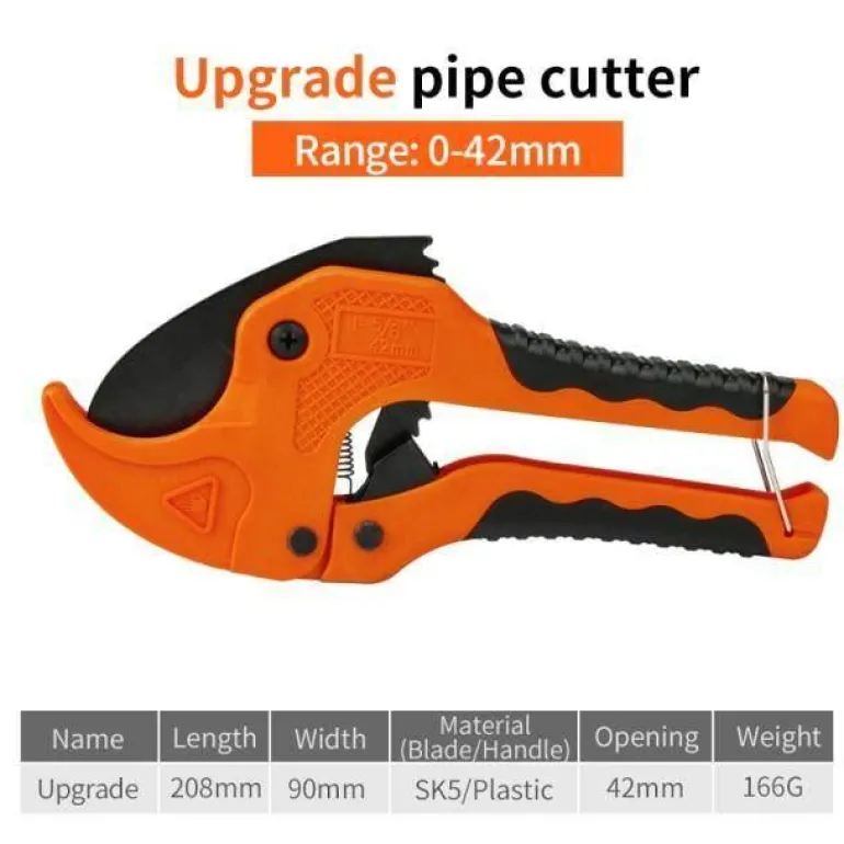 Dieses vielseitige Werkzeug eignet sich zum Schneiden einer Reihe von Materialien, darunter PVC-, CPVC-, PE-, PPR- und PEX-Rohre mit Durchmessern bis zu 42 mm (1-2/3 Zoll). Es kann auch Gummischläuche, Vinyl und mehrschichtige Rohre verarbeiten und ist somit eine unverzichtbare Ergänzung für den Werkzeugkasten eines jeden Klempners.