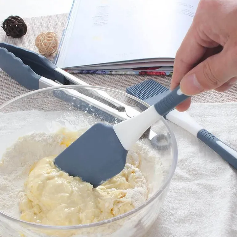 Entdecken Sie das Fresh Silicone Baking Tools Set, eine sorgfältig zusammengestellte Auswahl an Küchenutensilien, die Stil und Funktionalität vereinen. Diese langlebigen Utensilien aus hochwertigem, lebensmittelechtem Silikon verfügen über eine glatte, antihaftbeschichtete Oberfläche, die das Backen zum Vergnügen macht und Ihre köstlichen Kreationen mühelos löst. Die Reinigung ist schnell und einfach, sodass Sie mehr Zeit für den Genuss Ihrer Leckereien haben. Jedes Utensil ist mit einem praktischen Aufhängeloch ausgestattet, das für eine einfache Organisation sorgt und für Ordnung in Ihrer Küche sorgt. Dieses vielseitige Set ist ideal für Hobbybäcker, die mühelos köstliche Süßigkeiten zaubern möchten.