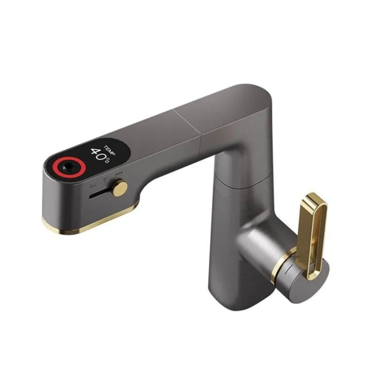 Erleben Sie Präzision und Komfort mit dem Smart Faucet mit LED-Temperaturanzeige. Mit diesem modernen Wasserhahn können Sie die Wassertemperatur mühelos überwachen und regeln. Die übersichtliche LED-Anzeige zeigt die aktuelle Wassertemperatur an und liefert Ihnen die Informationen, die Sie benötigen, um sie nach Ihren Wünschen anzupassen – für ein angenehmes Erlebnis bei jedem Gebrauch.