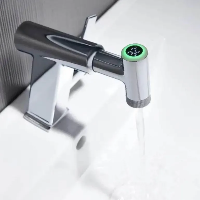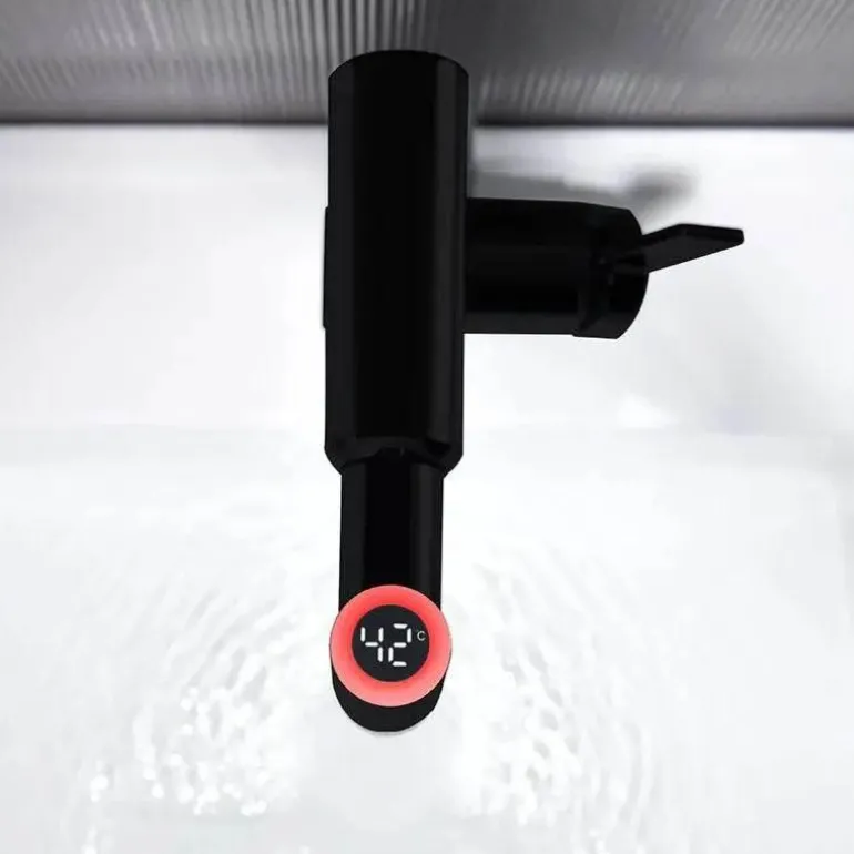 Verwandeln Sie Ihr Badezimmererlebnis mit dieser innovativen Wasserfallarmatur mit fortschrittlicher Temperaturregelung und elegantem, integriertem Display. Diese Armatur wurde für das moderne Zuhause entwickelt und zeigt die Wassertemperatur präzise an. So ist Sicherheit und Komfort bei jeder Benutzung gewährleistet. Das elegante Wasserfalldesign wertet Ihr Badezimmer nicht nur optisch auf, sondern sorgt auch für einen sanften, wohltuenden Wasserstrahl, der Ihren Alltag entspannter und angenehmer macht.