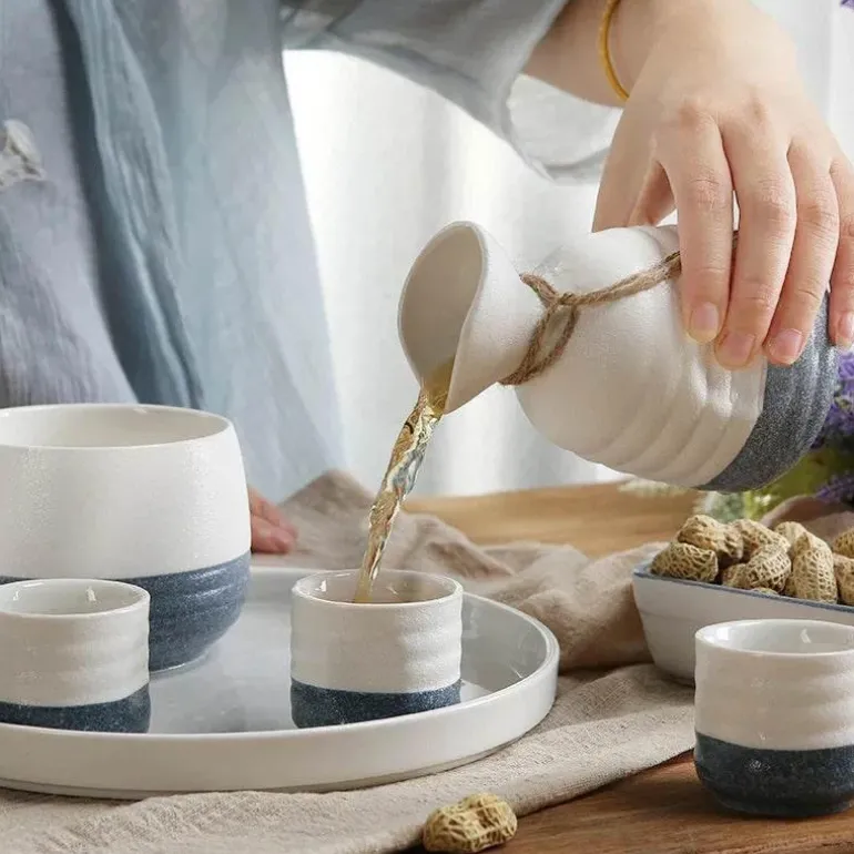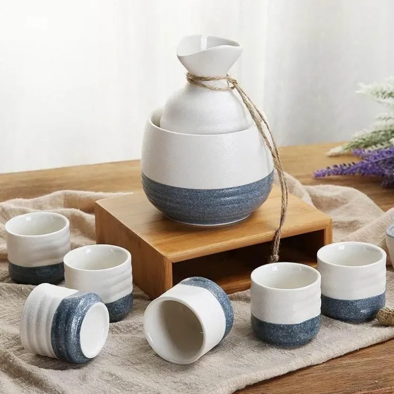 Betreten Sie eine Welt der Eleganz und Raffinesse mit unserem exquisiten Sake-Set aus Weißweinglas, verziert mit einem zarten Schneeflockenmotiv. Dieses Bar-Set aus hochwertiger Keramik ist nicht nur eine wunderschöne Ergänzung Ihrer Wohnkultur, sondern bereichert auch Ihr kulinarisches Erlebnis und sorgt für Wärme und Charme bei jedem Anlass.