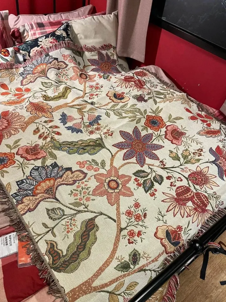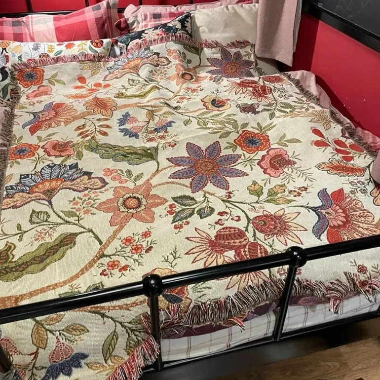 Verschönern Sie Ihr Outdoor-Erlebnis mit unserer floralen Outdoor-Sofadecke. Sie ist fachmännisch aus einer hochwertigen Polyester-Baumwollmischung gefertigt. Diese dekorative Decke eignet sich nicht nur perfekt für Picknicks und Wohnmobilausflüge, sondern eignet sich auch als elegante Tagesdecke für Ihr Zuhause.