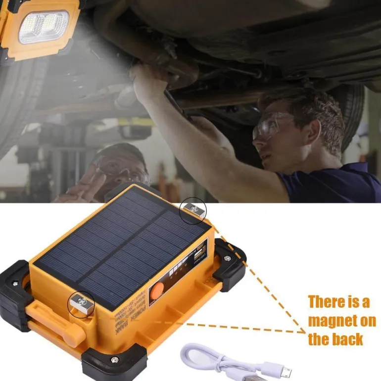 Als Powerbank ist diese Solar-Arbeitsleuchte mit einem USB-Ausgang ausgestattet, sodass Sie Mobiltelefone, Laptops und andere elektronische Geräte aufladen können – perfekt für Notfälle im Freien, wenn herkömmliche Stromquellen nicht verfügbar sind.