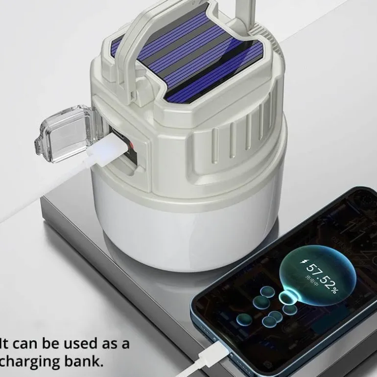 Erleben Sie zuverlässige Beleuchtung bei Ihren Outdoor-Abenteuern mit der Solar-LED-Campinglaterne mit USB-Aufladung. Diese vielseitige Lichtquelle ist für Campingausflüge konzipiert und bietet den Komfort von Solar- und USB-Lademöglichkeiten. Das leichte und kompakte Design ermöglicht einen einfachen Transport und macht sie zu einer unverzichtbaren Ergänzung Ihrer Campingausrüstung.