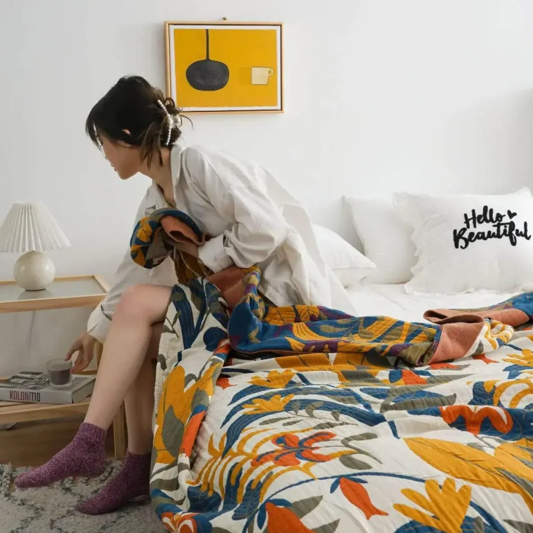 Erleben Sie den Komfort und die Eleganz unserer Baumwoll-Sommerdecke, ein vielseitiges Accessoire für all Ihre Sommeraktivitäten. Verschönern Sie Ihre Entspannungsroutine mit dieser hochwertigen Decke, die Funktionalität mit Stil verbindet.