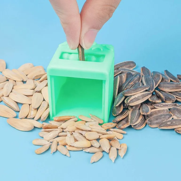 Im Lieferumfang ist ein Sonnenblumenkernschäler enthalten, der Ihr Snack-Erlebnis verschönert. Vereinfachen Sie das Schälen der Kerne und schonen Sie gleichzeitig Ihre Zahngesundheit mit diesem unverzichtbaren Küchenzubehör.