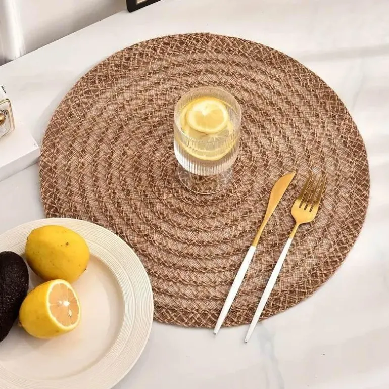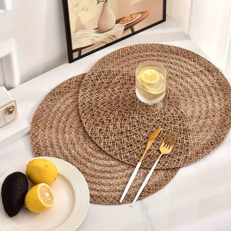 Veredeln Sie Ihr kulinarisches Erlebnis mit unserem wunderschön gearbeiteten, spiralförmig gewebten Tischset. Es zieht den Blick auf sich und verleiht jedem Tischgedeck eine faszinierende Note. Hergestellt aus edlen Naturfasern in erdigen Tönen, wertet dieses hitzebeständige Tischset nicht nur Ihre Einrichtung auf, sondern bietet auch wichtigen Schutz für alle Arten von Geschirr.