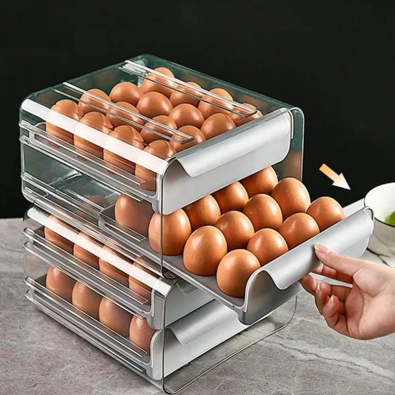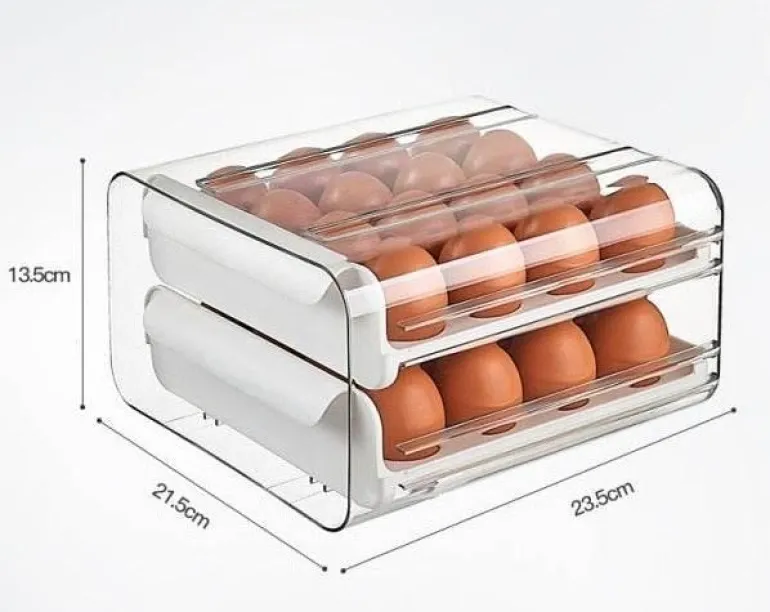 Entdecken Sie eine effiziente Lösung zur Eieraufbewahrung mit diesem doppellagigen, stapelbaren Organizer. Er bietet Platz für bis zu 32 Eier in 32 Einzelfächern. Diese Aufbewahrungsbox sorgt nicht nur für ordentliche Aufbewahrung Ihrer Eier, sondern hilft auch, den Platz in Ihrer Küche optimal zu nutzen.