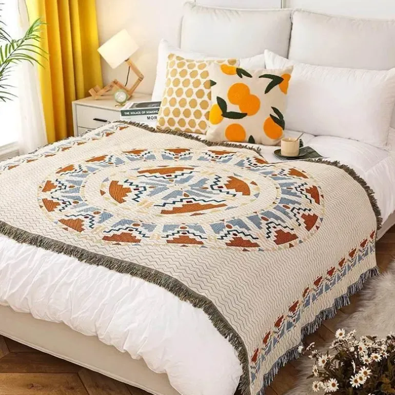 Diese Decke ist ideal für Frühling und Herbst und bietet Wärme und Komfort, ohne zu sperrig zu sein. Ob Sie auf dem Sofa faulenzen, es sich im Bett gemütlich machen oder unterwegs sind, sie ist ein unverzichtbares Accessoire zum Entspannen.