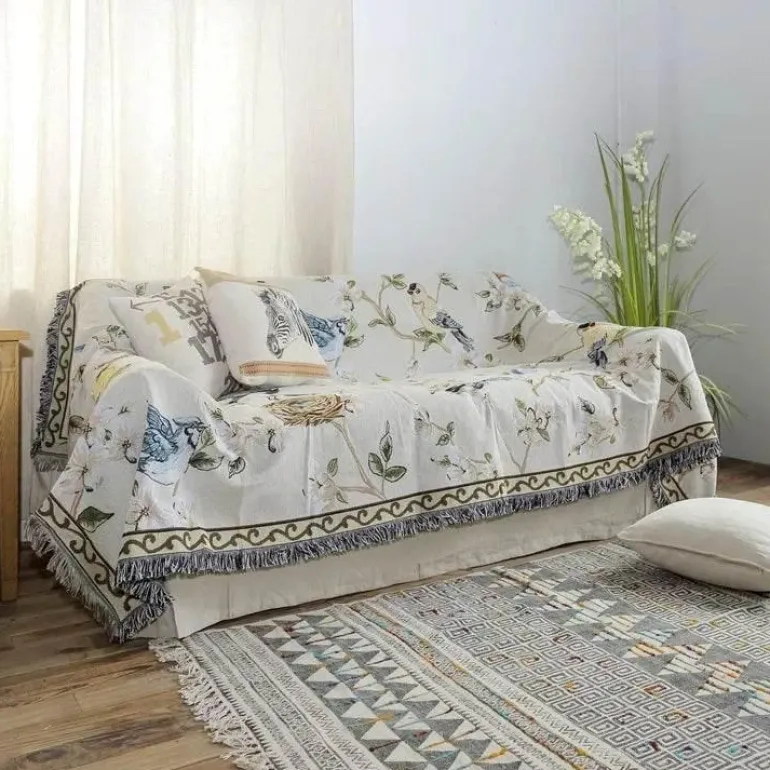 Erleben Sie die perfekte Kombination aus Stil und Komfort mit der gestrickten Sofadecke „Floral Bird“, einer modernen Decke, die jeden Wohnraum aufwertet. Diese luxuriöse Decke aus einer hochwertigen Polyester-Baumwoll-Mischung verleiht Ihrer Wohnkultur einen Hauch von Eleganz.