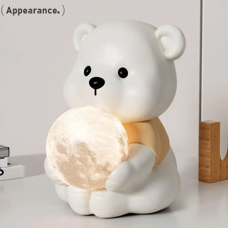 Verwandeln Sie das Kinderzimmer Ihres Kindes mit dem Goodbye Bear Nachtlicht, einer charmanten Nachttischlampe, die jedem Schlafzimmer eine verträumte Note verleiht. Dieses dekorative Accessoire dient sowohl als beruhigendes Nachtlicht als auch als schöne Ergänzung Ihrer Wohnkultur. Die Lampe aus robustem Harz besticht durch ihr einladendes weißes Finish, das mit vielen Designthemen harmoniert.