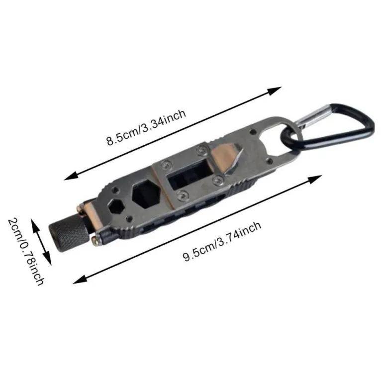 Dieses Schlüsselanhänger-Tool aus hochwertigem Edelstahl besticht durch seine beeindruckende Härte und Robustheit und ist somit besonders langlebig. Dank seines vielseitigen Designs eignet es sich als Outdoor-Camping-Zubehör, Survival-Tool oder praktisches Wartungsgerät.