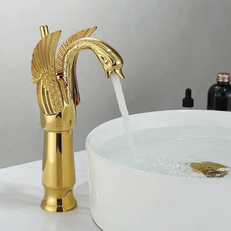 **Wie schneidet dieses Produkt im Vergleich zu anderen ab?** Die einzigartige goldene Oberfläche und das Einhebel-Design des Swan-Wasserhahns heben ihn von Standardmodellen ab und bieten sowohl eine ansprechende Optik als auch Benutzerfreundlichkeit bei gleichbleibend hoher Leistung.