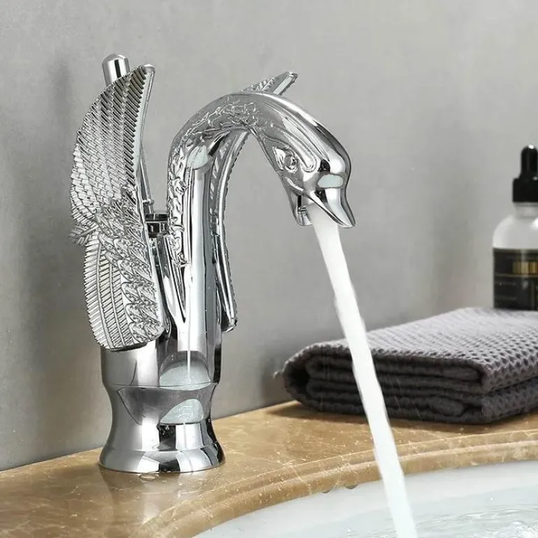 – 1 x goldener Einhebel-Waschtischhahn mit Schwanenmotiv