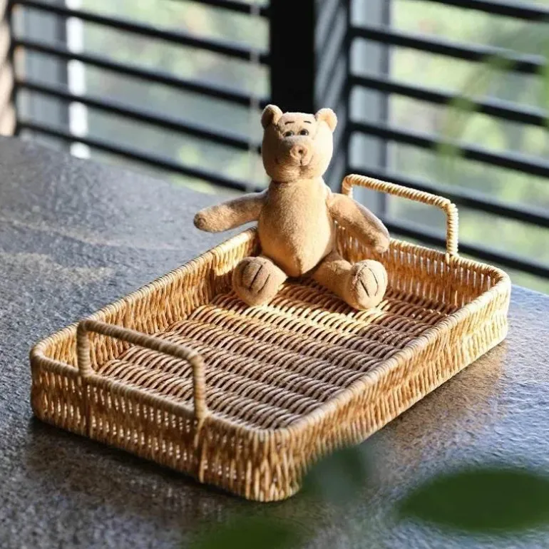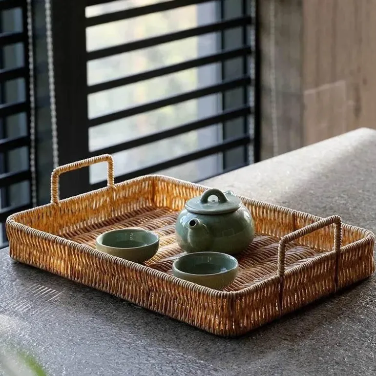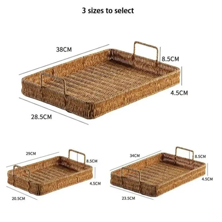 Entdecken Sie die perfekte Kombination aus Stil und Funktionalität mit dem Rattan Weave Handle Tray. Hergestellt aus einer robusten Mischung aus 80 % Polyethylen und 20 % Polypropylen, besticht dieses Tablett durch sein elegantes Design, inspiriert von japanischer und vietnamesischer Ästhetik, und verleiht jedem Raum eine moderne Note.