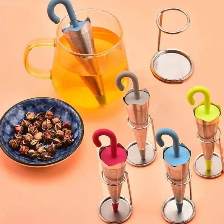 – 1x Regenschirm-Tee-Ei aus Edelstahl