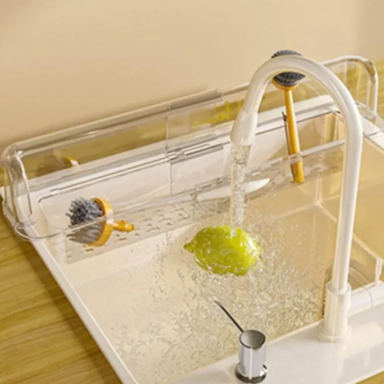 Im Lieferumfang enthalten ist ein spritzwassergeschütztes Teleskop-Spülbeckenregal, das Ihre Küchenroutine bereichert. Genießen Sie mit dieser funktionalen und stilvollen Aufbewahrungslösung einen gut organisierten Spülbereich.