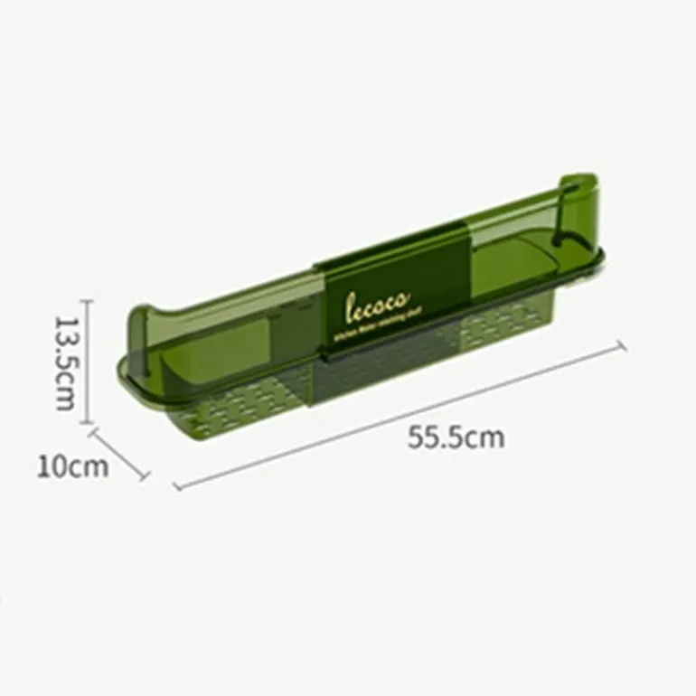 Mit einer Länge von 55,5 cm, einer Breite von 13,5 cm und einer Höhe von 10 cm bietet das Gestell großzügig Platz für Spülmittel, Schwämme und andere wichtige Reinigungsutensilien. Dieses durchdachte Design sorgt für Ordnung auf Ihrer Arbeitsplatte und stellt sicher, dass alles, was Sie brauchen, leicht zugänglich ist.