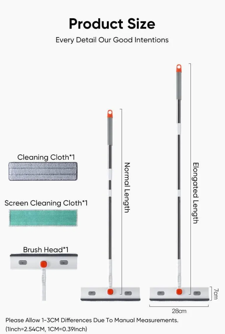 Dieser umweltfreundliche Fensterreiniger vereint Funktionalität und Nachhaltigkeit und sorgt für ein strahlend sauberes Zuhause und schont gleichzeitig die Umwelt. Der Bürstenkopf ist um 180 Grad drehbar und bietet vielseitige Reinigungswinkel für eine gründliche Reinigung. Dank der großzügigen Kopfgröße von 28 cm x 7 cm können Sie eine größere Fläche reinigen, den Reinigungsaufwand reduzieren und Ihre Aussicht schneller genießen.