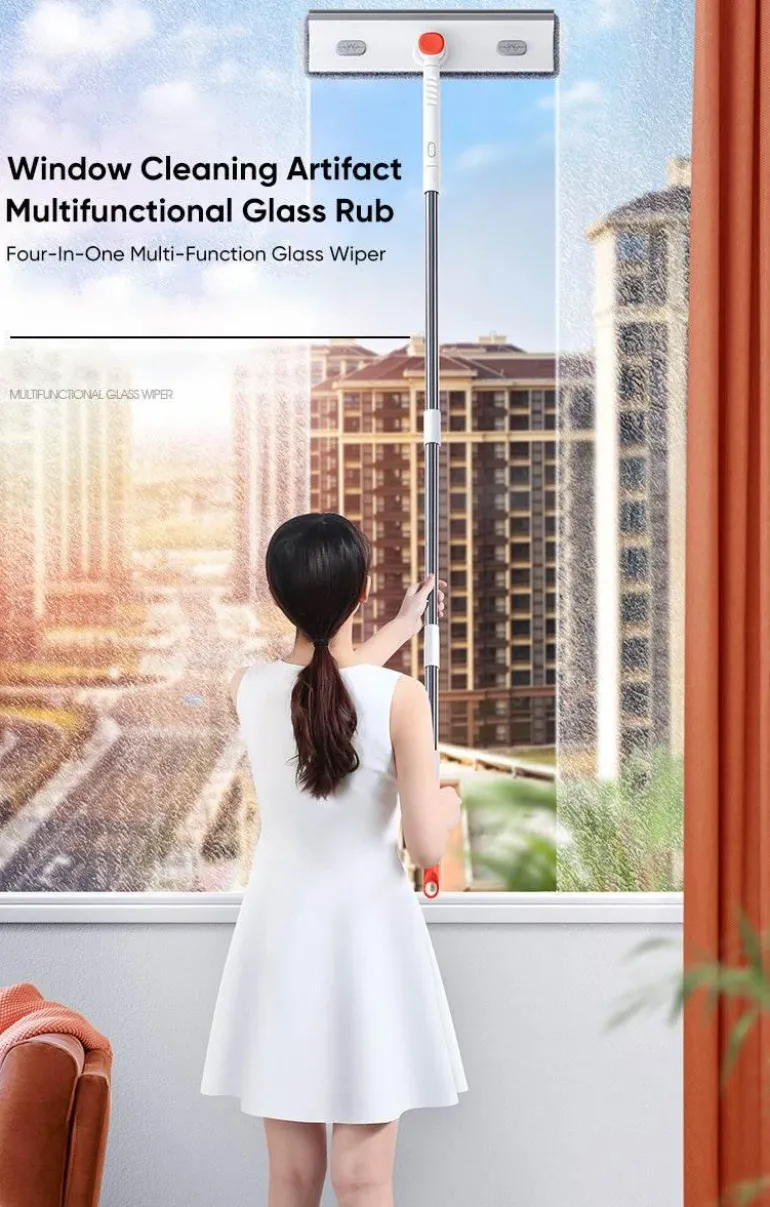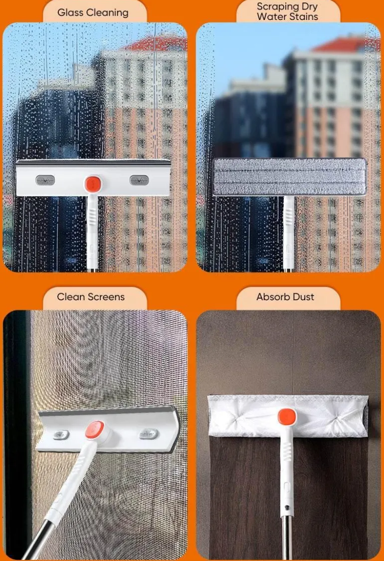 – 1 verstellbare Fensterschaberbürste mit langem Teleskopgriff