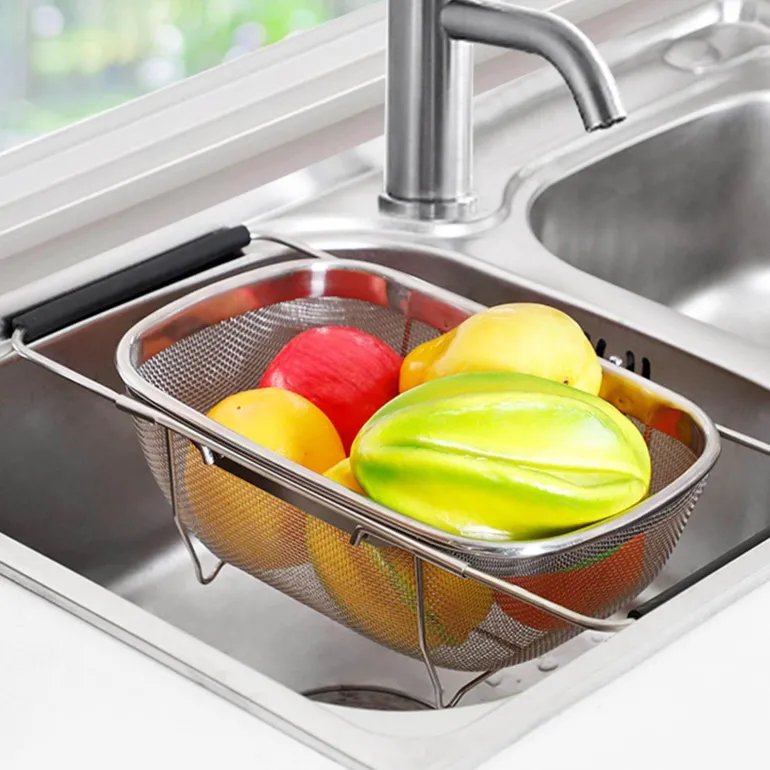 Maximieren Sie Ihre Arbeitsfläche mit dem Teleskop-Abtropfgestell über der Spüle – die ideale Lösung für effizientes Abtrocknen und Ordnen. Das Abtropfgestell sitzt sicher über der Spüle und lässt das Wasser direkt ins Becken ablaufen, sodass Ihre Arbeitsfläche frei von Unordnung bleibt.