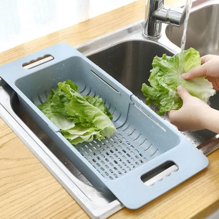 Das einziehbare Design dieses Spülkorbs ermöglicht eine sorgenfreie Nutzung und eignet sich perfekt zum Waschen von Obst und Gemüse, aber auch von Geschirr. Dank der praktischen Abflussfunktion ermöglicht er schnelles und effizientes Spülen und vereinfacht so Ihre Küchenarbeit.
