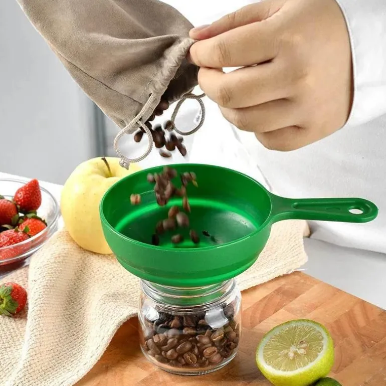 Dieser verstellbare Trichter ist so konzipiert, dass das Befüllen von Gläsern und Umfüllen von Zutaten einfacher denn je ist und Sie Ihre Küchenaufgaben mühelos und effizient erledigen können.