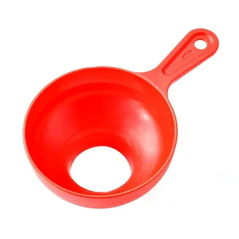 Der Trichter verfügt über eine breite Öffnung, die das Spritzrisiko reduziert und sich somit ideal zum sauberen Ausgießen von Flüssigkeiten oder Umfüllen trockener Zutaten eignet. Der robuste Kunststoffgriff bietet Wärmeisolierung, schützt Sie vor Verbrühungen und bietet gleichzeitig einen bequemen und sicheren Halt während der Anwendung.