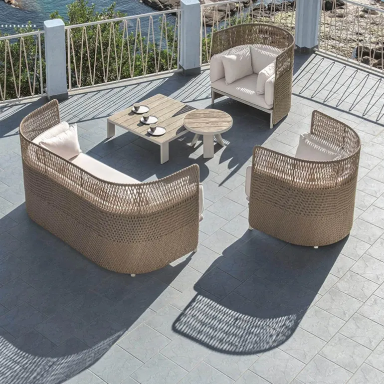 Entdecken Sie die Terrasse Outdoor-Möbelkollektion, in der sich modernes Design elegant mit dem zeitlosen Charme von Rattan verbindet. Diese sorgfältig zusammengestellte Auswahl wertet Ihren Außenbereich auf und bietet eine harmonische Kombination aus Stil und Komfort, die zu jeder Terrasse oder jedem Garten passt.